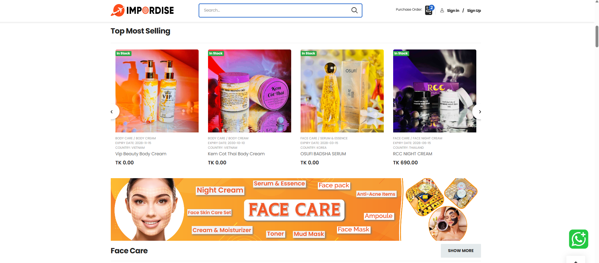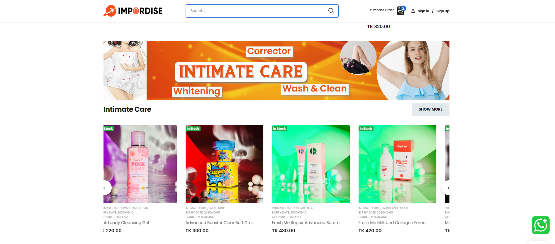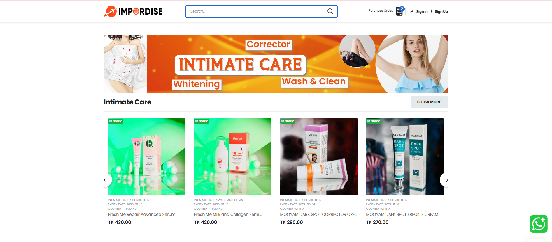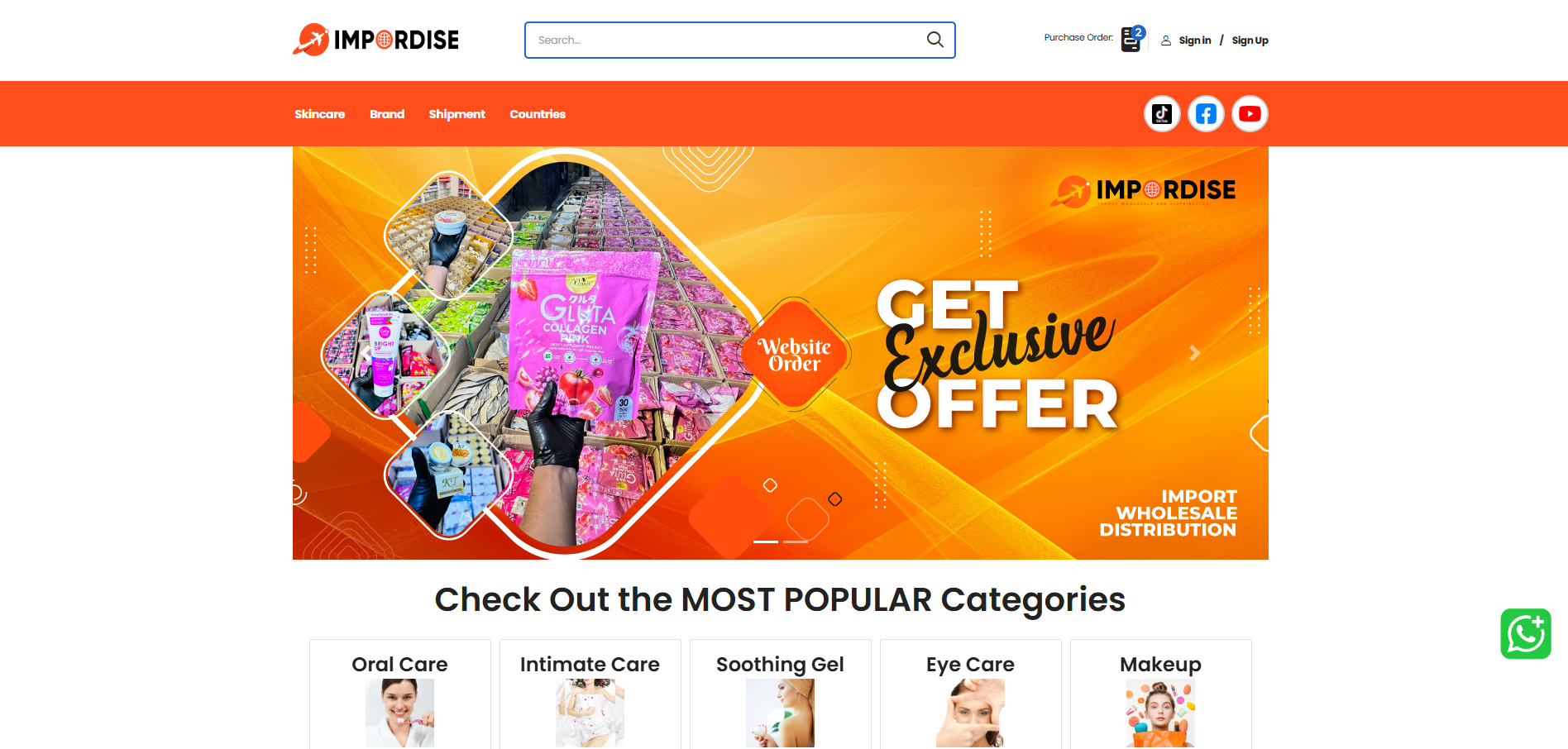 Impordise is an wholesale e-commerce platform that serves as a key distributor for a wide array of beauty, cosmetics, and health supplements, sourcing products from countries like Korea, Thailand, China, and Japan. It focuses on facilitating B2B transactions for resellers and retailers, offering streamlined bulk purchasing, clear product certification information, and detailed shipment tracking to enable partners to stock popular international brands efficiently.